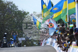 Spectators cheer during the men's Under 23 road race, at the road cycling World Championships in Kigali, Rwanda, Friday, Sept. 26, 2025. (AP Photo/Jerome Delay)