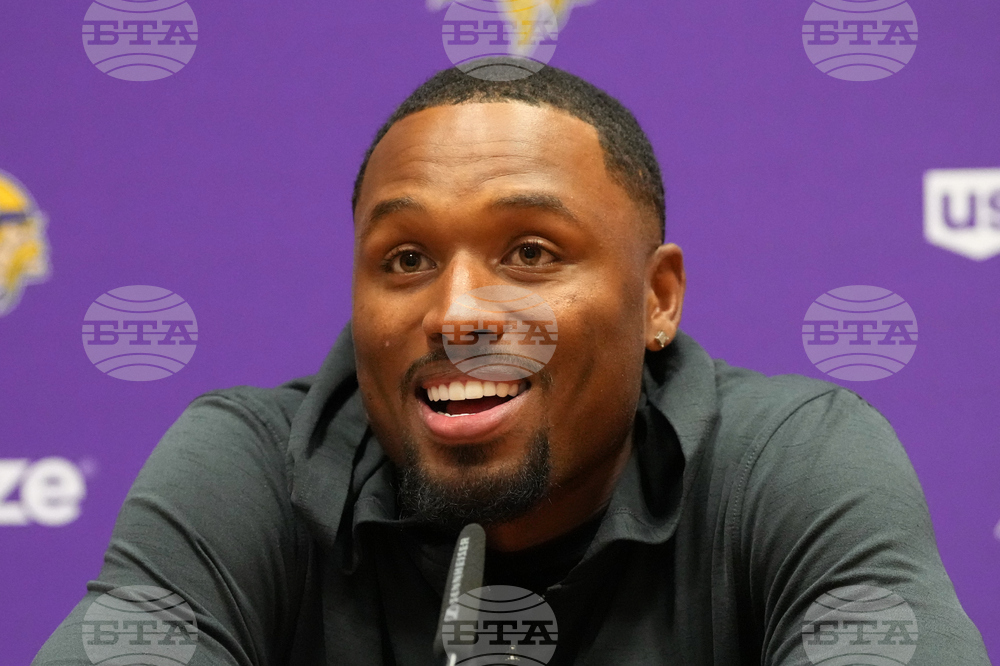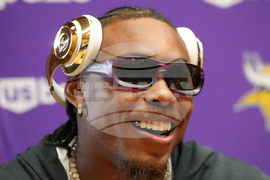 Minnesota Vikings Isaiah Rodgers speaks during a press conference ahead of their match against Pittsburgh Steelers in Dublin, Friday, Sept. 26, 2025.(AP Photo/Frank Augstein)
