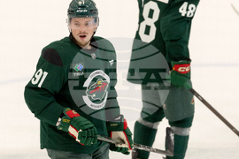 Minnesota Wild's Vladimir Tarasenko (91) looks on during NHL hockey training camp at Tria Rink in St. Paul, Minn., Thursday, Sept. 18, 2025. (Carlos Gonzalez/Star Tribune via AP)