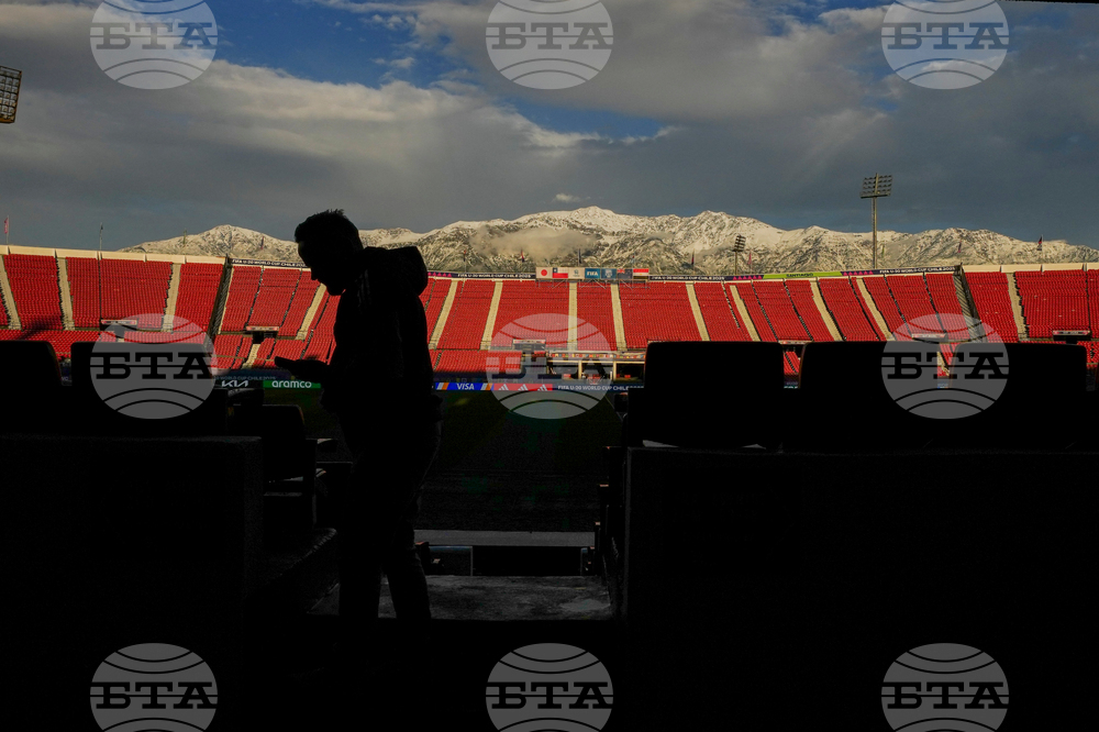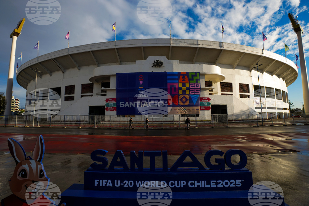 Mountains rise above empty stands of the National Stadium ahead of the start of the FIFA U-20 World Cup in Santiago, Chile, Friday, Sept. 26, 2025. (AP Photo/Esteban Felix)