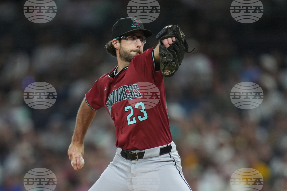 Arizona Diamondbacks starting pitcher Zac Gallen works against a San Diego Padres batter during the third inning of a baseball game Friday, Sept. 26, 2025, in San Diego. (AP Photo/Gregory Bull)