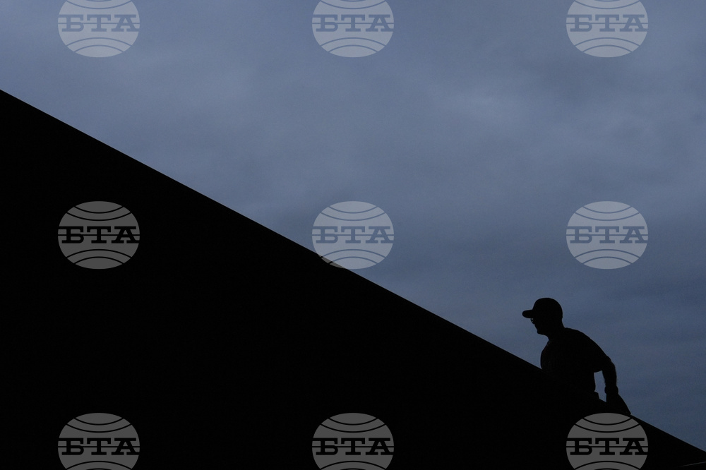 A fan rides an escalator before a baseball game between the Los Angeles Angels and the Houston Astros Saturday, Sept. 27, 2025, in Anaheim, Calif. (AP Photo/Jae C. Hong)