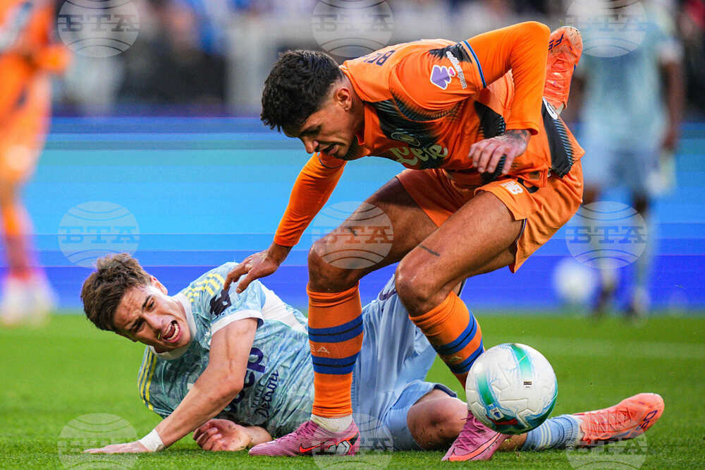 Como's Alex Valle, left, and Cremonese's Alessio Zerbin in action during the Serie A soccer match between Como and Cremonese at the Giuseppe Sinigaglia stadium in Como, Italy, Saturday Sept. 27, 2025. (Antonio Saia/LaPresse via AP)