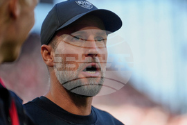 Stuttgart's head coach Sebastian Hoeness looks on before the German Bundesliga soccer match between 1.FC Köln and VfB Stuttgart in Cologne, Germany, Sunday, Sept. 28, 2025. (AP Photo/Martin Meissner)