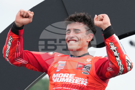 Third place Spanish rider Joan Mir of Honda HRC Castrol celebrate after Japanese Grand Prix at the Motegi circuit in Motegi, north of Tokyo, Sunday, Sept. 28, 2025. (AP Photo/Hiro Komae)