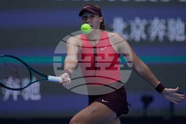 Jessica Pegula, of the United States plays against Emma Raducanu, of Britain during the women's singles match, at the China Open tennis tournament, in Beijing, Monday, Sept. 29, 2025. (AP Photo/Andy Wong)