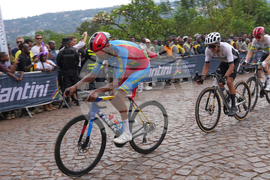 Norway's Mattias Skjelmose, right, leads Switzerland's Jan Christen during the men's Elite road race, at the road cycling World Championships in Kigali, Rwanda, Sunday, Sept. 28, 2025. (AP Photo/Jerome Delay)