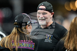 Washington Commanders head coach Dan Quinn watches during the first half of an NFL football game against the Atlanta Falcons, Sunday, Sept. 28, 2025, in Atlanta. (AP Photo/Brynn Anderson)