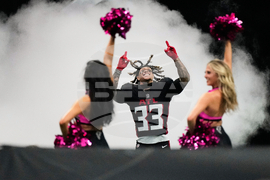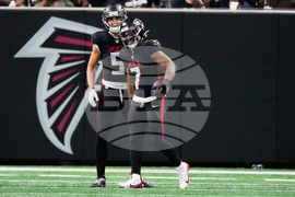 Atlanta Falcons safety Billy Bowman Jr. (33) is introduced before an NFL football game against the Washington Commanders, Sunday, Sept. 28, 2025, in Atlanta. (AP Photo/Brynn Anderson)