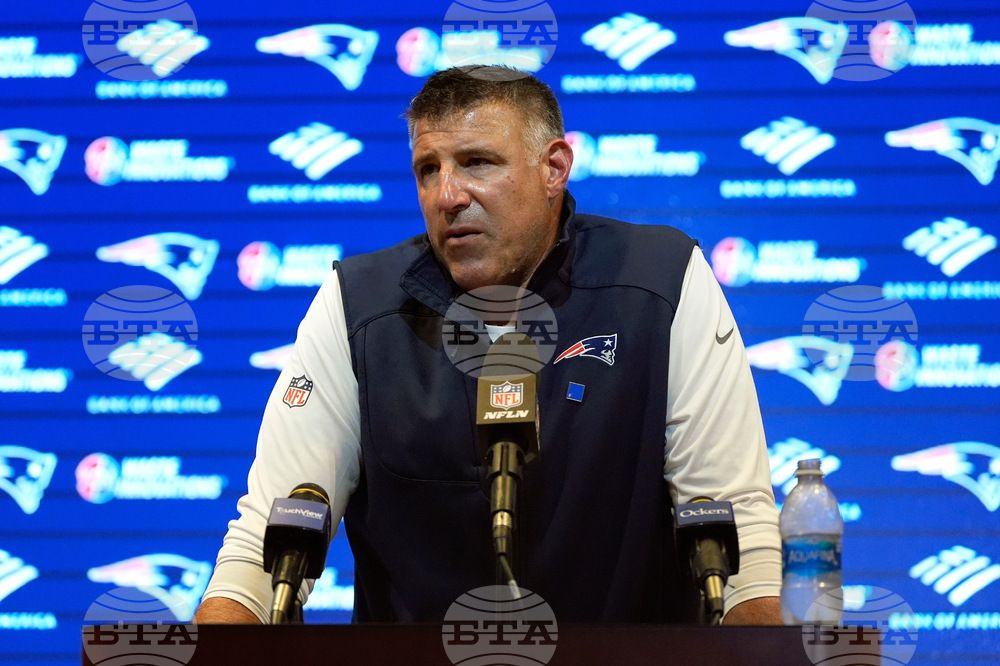 New England Patriots head coach Mike Vrabel speaks during a news conference after his team defeated the Carolina Panthers in an NFL football game, Sunday, Sept. 28, 2025, in Foxborough, Mass. (AP Photo/Charles Krupa)