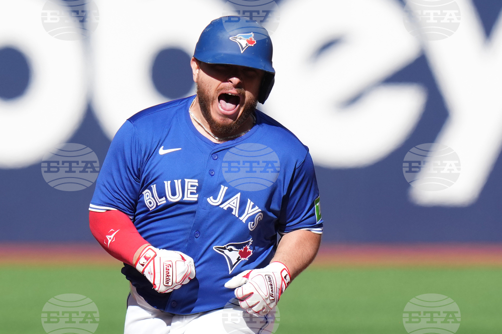 Toronto Blue Jays' Alejandro Kirk rounds the bases after hitting a grand slam against the Tampa Bay Rays during first-inning baseball game action in Toronto, Sunday, Sept. 28, 2025. (Chris Young/The Canadian Press via AP)