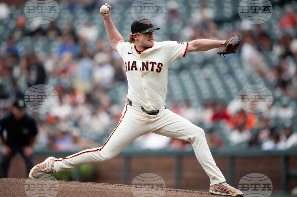 San Francisco Giants starting pitcher Logan Webb throws against the Colorado Rockies during the first inning of a baseball game, Sunday, Sept. 28, 2025, in San Francisco. (AP Photo/Thien-An Truong)