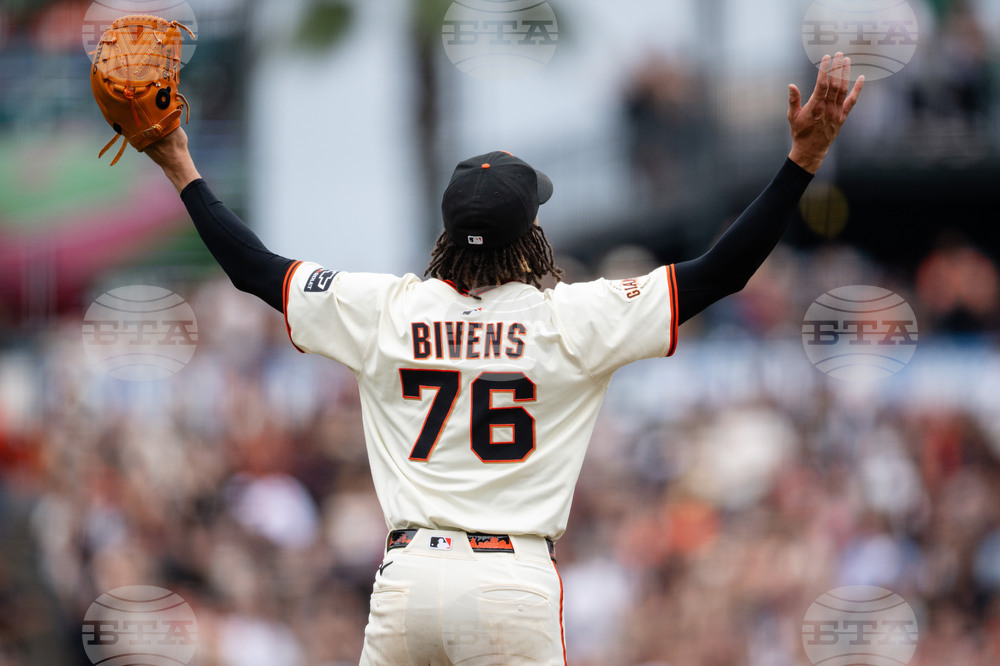 San Francisco Giants pitcher Spencer Bivens reacts after throwing a pitch to defeat the Colorado Rockies in the ninth inning of a baseball game, Sunday, Sept. 28, 2025, in San Francisco. (AP Photo/Thien-An Truong)