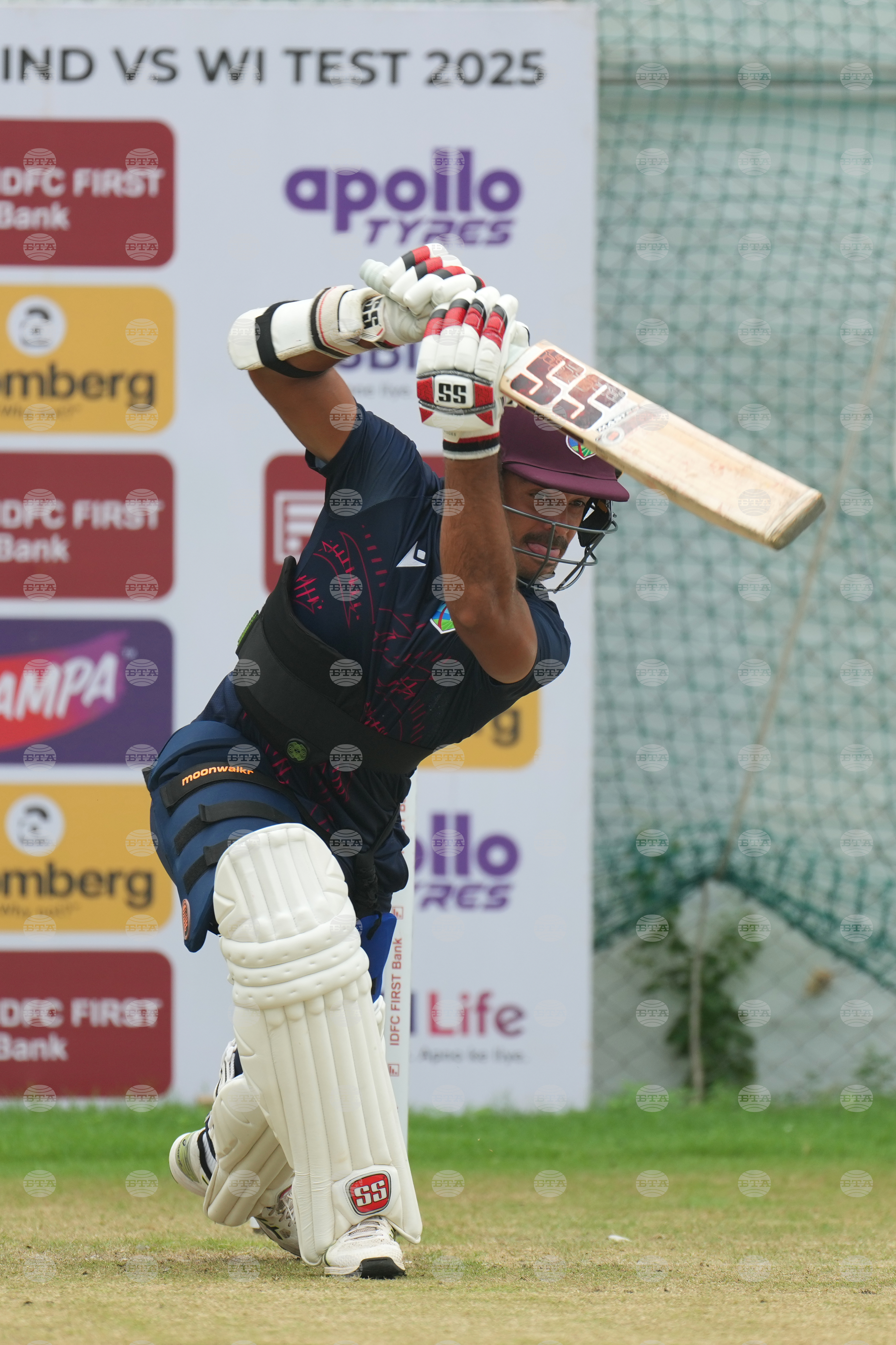West Indies' Tagenarine Chanderpaul bats during a practice session ahead of the first Test cricket match against India at Narendra Modi Stadium in Ahmedabad, India, Tuesday, Sept. 30, 2025. (AP Photo/Ajit Solanki)