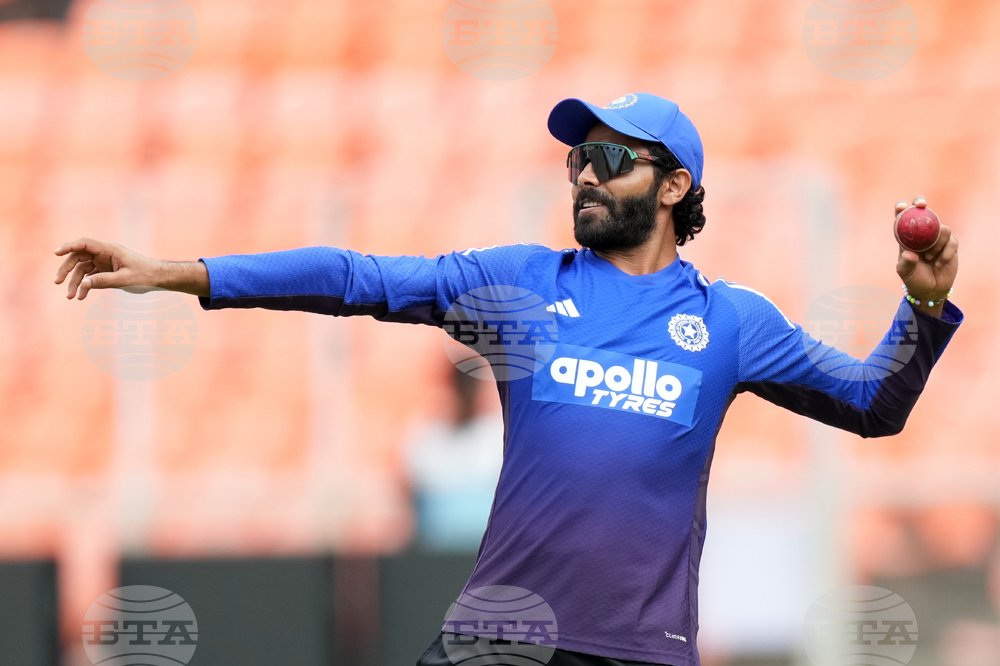 India's Ravindra Jadeja throws a ball during practice session ahead of the first Test cricket match against West Indies at Narendra Modi Stadium in Ahmedabad, India, Tuesday, Sept. 30, 2025. (AP Photo/Ajit Solanki)