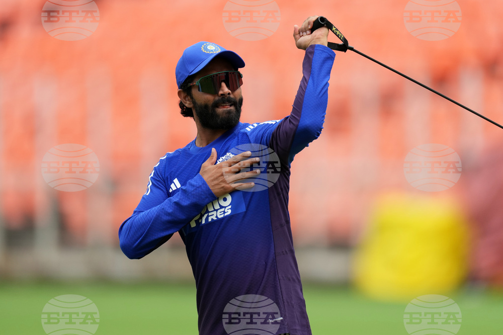 India's Ravindra Jadeja attends a practice session ahead of the first Test cricket match against West Indies at Narendra Modi Stadium in Ahmedabad, India, Tuesday, Sept. 30, 2025. (AP Photo/Ajit Solanki)