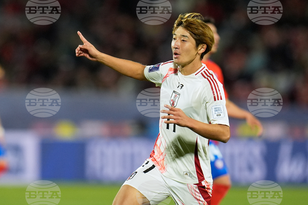 Japan's Yumeki Yokoyama (11) scores his side's 2nd goal against Chile during a FIFA U-20 World Cup Group A soccer match at National Stadium in Santiago, Chile, Tuesday, Sept. 30, 2025. (AP Photo/Esteban Felix)