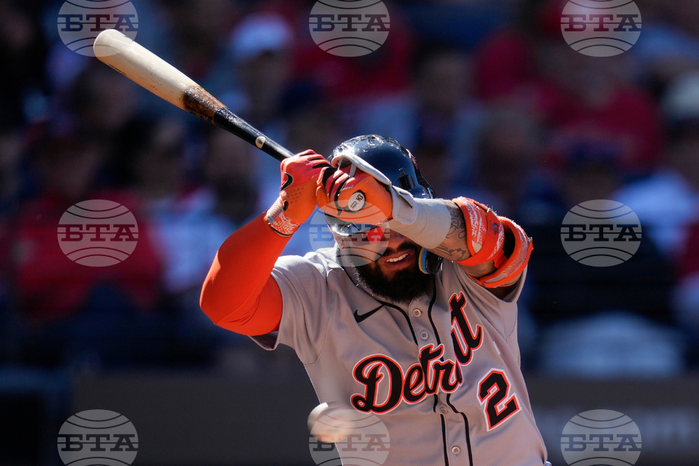 Detroit Tigers' Jahmai Jones reacts as he strikes out in the seventh inning of Game 2 of the American League Wild Card baseball playoff series against the Cleveland Guardians in Cleveland, Wednesday, Oct. 1, 2025. (AP Photo/Sue Ogrocki)