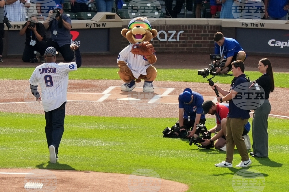 Andre Dawson throws a ceremonial first pitch before Game 2 of a National League wild card baseball game Wednesday, Oct. 1, 2025, in Chicago. (AP Photo/Nam Huh)