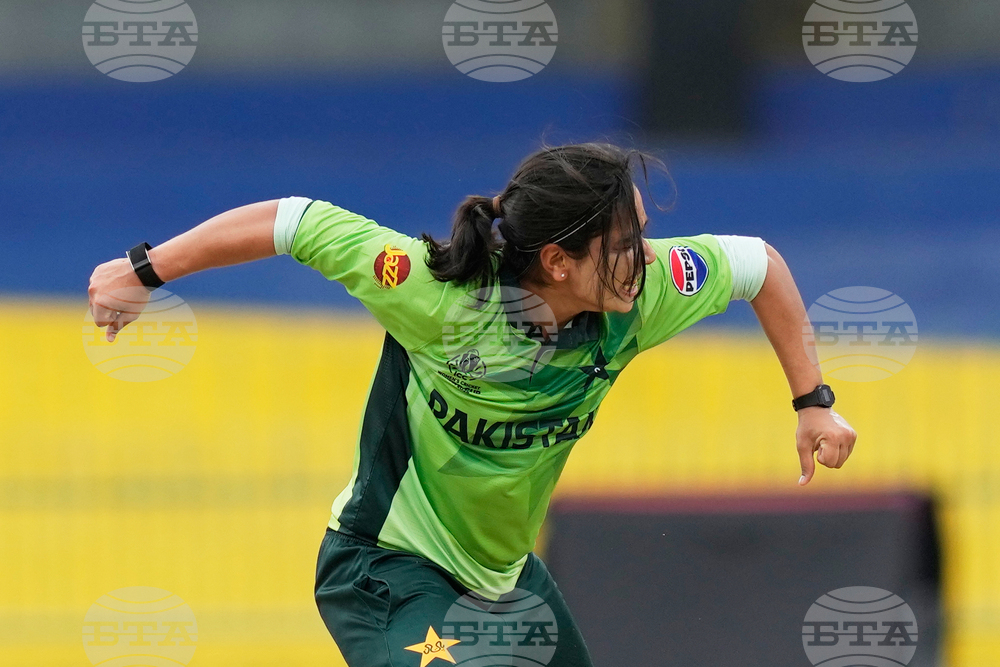 Pakistan's Diana Baig bowls a delivery during the ICC Women's Cricket World Cup match between India and Pakistan at Premadasa Stadium in Colombo, Sri Lanka, Sunday, Oct, 5, 2025. (AP Photo/Eranga Jayawardena)