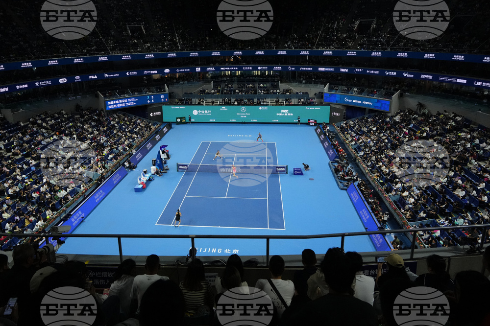 Jessica Pegula, of the United States returns a backhand shot from Linda Noskova, of the Czech Republic during the women's singles semifinals match of the China Open tennis tournament, at the National Tennis Center, in Beijing, Saturday, Oct. 4, 2025. (AP Photo/Andy Wong)