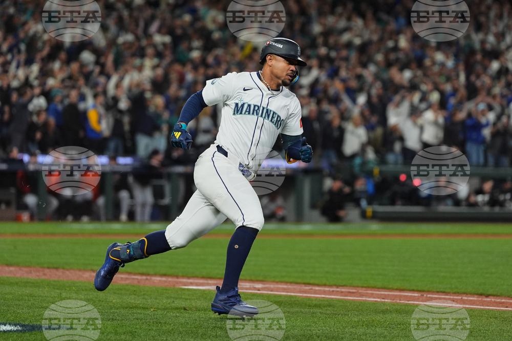 Seattle Mariners' Jorge Polanco runs the bases after hitting a solo home run during the sixth inning in Game 2 of baseball's American League Division Series against the Detroit Tigers, Sunday, Oct. 5, 2025, in Seattle. (AP Photo/John Froschauer)