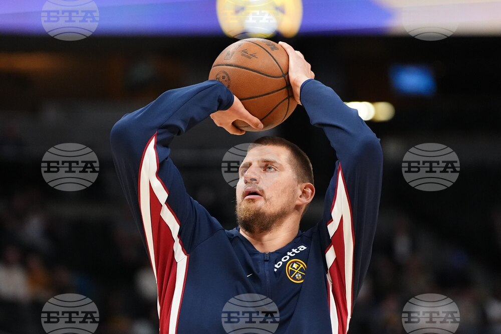 Denver Nuggets center Nikola Jokić warms up before a preseason NBA basketball game against the Chicago Bulls, Tuesday, Oct. 14, 2025, in Denver. (AP Photo/Jack Dempsey)