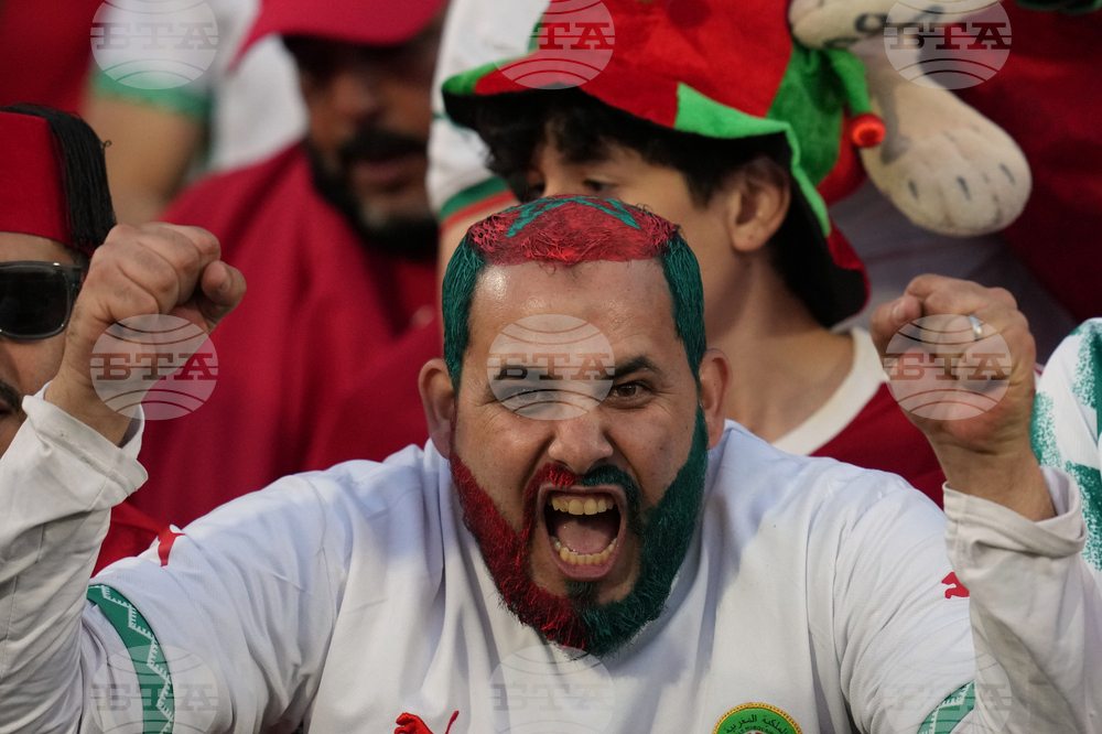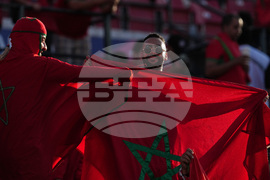 Fans of Morocco display flags prior to the FIFA U-20 World Cup final soccer match between Morocco and Argentina in Santiago, Chile, Sunday, Oct. 19, 2025. (AP Photo/Esteban Felix)