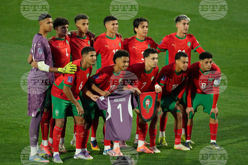 Players of Morocco pose for the team photo prior to their FIFA U-20 World Cup final soccer match against Argentina in Santiago, Chile, Sunday, Oct. 19, 2025. (AP Photo/Andre Penner)