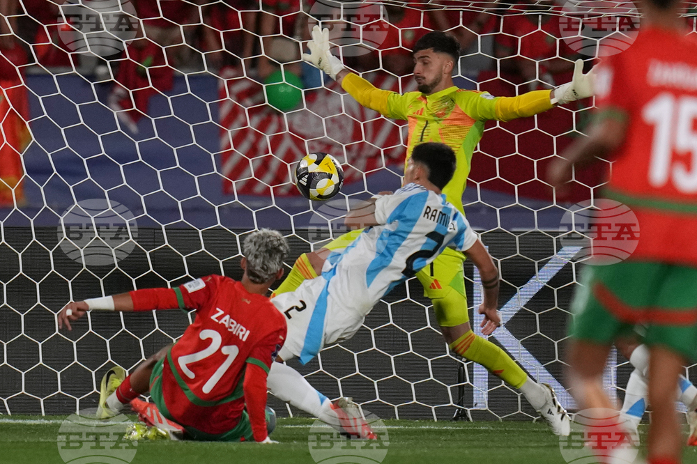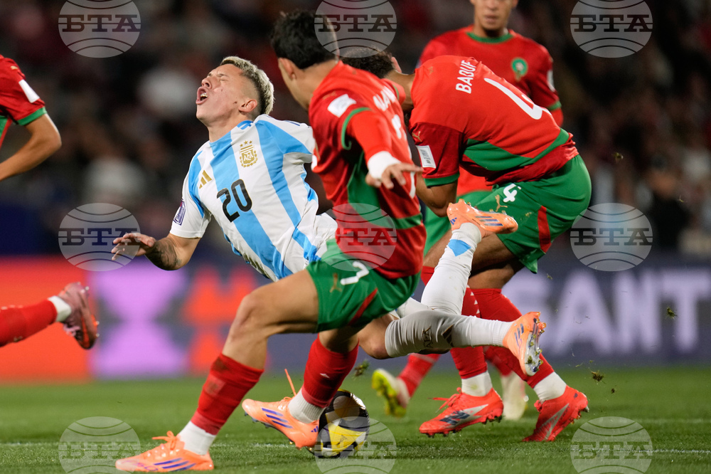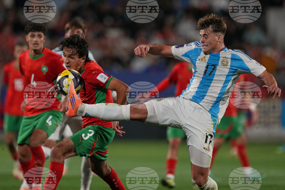 Argentina and Morocco play the FIFA U-20 World Cup final soccer match in Santiago, Chile, Sunday, Oct. 19, 2025. (AP Photo/Gustavo Garello)