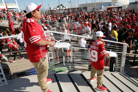 San Francisco 49ers' fans enter before an NFL football game against the Atlanta Falcons in Santa Clara, Calif., Sunday, Oct. 19, 2025. (Scott Strazzante/San Francisco Chronicle via AP)
