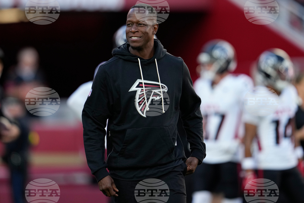 Atlanta Falcons head coach Raheem Morris walks on the field before an NFL football game between the San Francisco 49ers and the Atlanta Falcons, Sunday, Oct. 19, 2025, in Santa Clara, Calif. (AP Photo/Godofredo A. Vásquez)