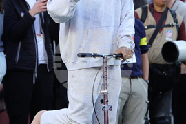 Atlanta Falcons running back Bijan Robinson (7) warms up before an NFL football game between the San Francisco 49ers and the Atlanta Falcons, Sunday, Oct. 19, 2025, in Santa Clara, Calif. (AP Photo/Godofredo A. Vásquez)