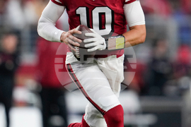San Francisco 49ers quarterback Mac Jones (10) runs against the Atlanta Falcons in the second half of an NFL football game, Sunday, Oct. 19, 2025, in Santa Clara, Calif. (AP Photo/Godofredo A. Vásquez)