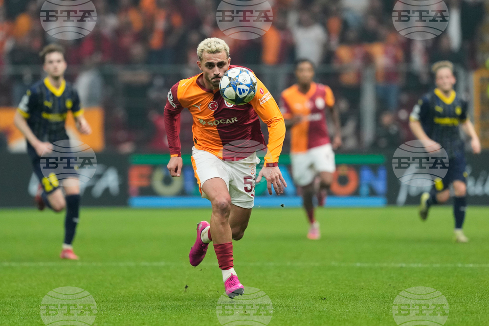 Galatasaray's Baris Yilmaz controls the ball during the Champions League opening phase soccer match between Galatasaray and Bodo Glimt, in Istanbul, Turkey, Wednesday, Oct. 22, 2025. (AP Photo/Khalil Hamra)