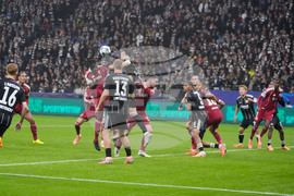 Frankfurt's Mario Goetze, centre left, and Liverpool's Florian Wirtz, centre right, challenge for the ball during the Champions League opening phase soccer match between Eintracht Frankfurt and Liverpool in Frankfurt, Germany, Wednesday, Oct. 22, 2025. (AP Photo/Michael Probst)