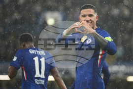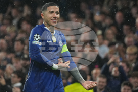 Chelsea's Enzo Fernandez celebrates after scoring during the UEFA Champions League soccer match between Chelsea and Ajax in London Wednesday, Oct. 22, 2025. (AP Photo/Alastair Grant)