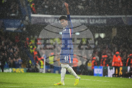 Chelsea's Tyrique George celebrates after scoring during the UEFA Champions League soccer match between Chelsea and Ajax in London Wednesday, Oct. 22, 2025. (AP Photo/Alastair Grant)
