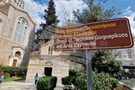 Атина (10 април 2023) Малката митрополия, официално църквата Св. Елевтерий или Панагия Горгоепикоос, е византийска църква, разположена на площад Митрополеос, до катедралата на Атина. Построена е около XII – XIII в. Намира се зад Митрополитската катедрала на Атина. Смята се, че църквата датира от 12-ти век (една от най-старите в Атина), но някои исторически източници казват, че може да е дори по-стара и вероятно е построена от византийската императрица Ирина Атинянка. Изградена е върху руините на бивш древен храм, посветен на Елетея, божество-закрилник на бременността и раждането. Храмът функционира през 1841 г. като обществена библиотека на града, а през 1856 г. е възстановен и посветен на Свети Елефтериос. Ирина Сарантапихина или Ирина Атинянкa е първата жена в историята на Византийската империя, която управлява еднолично от свое име. Като монарх тя се нарича и титулува „василевс на ромеите“, вместо „августа“ или „василиса“ (императрица).