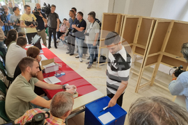 Подгорица (11 юни 2023) Черногорците гласуват днес на предсрочни парламентарни избори, които са решаващи за преодоляване на политическата криза и застоя на страната по пътя към членство в ЕС. Общо 542 468 граждани могат да избират измежду 15 партии и коалиции, които се борят за влизане в 81-местния парламент. Снимка: София Ангелова /БТА (ЕД)