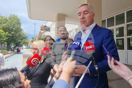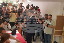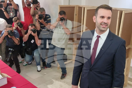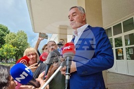 Подгорица (11 юни 2023) Черногорците гласуват днес на предсрочни парламентарни избори, които са решаващи за преодоляване на политическата криза и застоя на страната по пътя към членство в ЕС. Общо 542 468 граждани могат да избират измежду 15 партии и коалиции, които се борят за влизане в 81-местния парламент. На снимката: лидерът на "Европа сега" Милойко Спаич. Снимка: София Ангелова /БТА (ЕД)