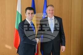 Брюксел (24 март 2022) Министър-председателят Кирил Петков (вляво) проведе среща с президента на Румъния Клаус Йоханис в Брюксел преди началото на редовното заседание на Европейския съвет. Двамата обсъдиха актуалните теми от европейския дневен ред, които ще бъдат на вниманието на лидерите на ЕС по-късно на заседанието днес. Акцент бе поставен върху ситуацията в Украйна. За България и Румъния като две от държавите членки, приемащи бягащите от войната, е от съществено значение да получат европейска подкрепа и солидарност в оказването на помощ на нуждаещите се.