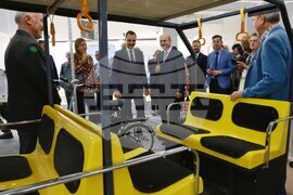 Солун (9 септември 2023) Министърът на икономиката и индустрията Богдан Богданов (втори отляво), министърът на финансите и икономиката на Гърция Константинос Хадзидакис (вляво) откриха официално българската палата на Солунския международен панаир.