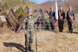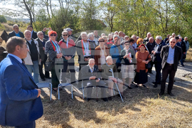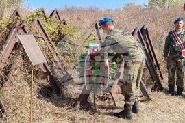 Село Страцин (20 октомври 2023) Край Страцин в източната част на Република Северна Македония днес бе отбелязана 79-ата годишнина от участието на България в заключителния етап на Втората световна война. За първи път заупокойната молитва за загиналите български войни в битките при Стражин и Страцин през октомври 1944 г. се отслужва от свещеници от България и Република Северна Македония. Делегацията, която пристигна от България е оглавена от генерал-майор Явор Матеев (на снимката), командир на Съвместното командване на специалните операции (СКСО), а в нея са включени военнослужещи от състава на СКСО, представители на военно-патриотични съюзи - ветерани от Втората световна война, офицери и сержанти от запаса. На церемонията присъстват и посланикът на България в Северна Македония Ангел Ангелов, генералният консул в Битоля Николай Димитров, военното аташе на страната ни подполковник Асен Ламбев и помощник военното аташе майор Диан Динев, представители на Сдружението на ветераните и резервистите от отбраната на Северна Македония, дипломати от мисиите на България в Северна Македония, представители на българската общност и сдруженията в страната.