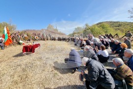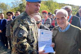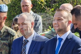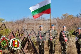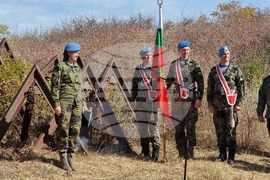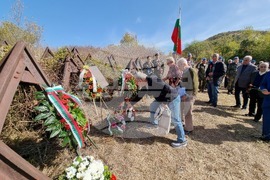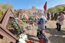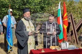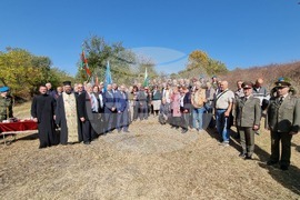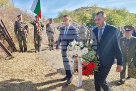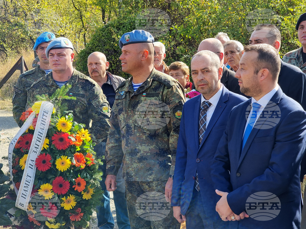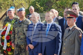 Село Страцин (20 октомври 2023) Край Страцин в източната част на Република Северна Македония днес бе отбелязана 79-ата годишнина от участието на България в заключителния етап на Втората световна война. За първи път заупокойната молитва за загиналите български войни в битките при Стражин и Страцин през октомври 1944 г. се отслужва от свещеници от България и Република Северна Македония. Делегацията, която пристигна от България е оглавена от генерал-майор Явор Матеев (втори отдясно), командир на Съвместното командване на специалните операции (СКСО), а в нея са включени военнослужещи от състава на СКСО, представители на военно-патриотични съюзи - ветерани от Втората световна война, офицери и сержанти от запаса. На церемонията присъстват и посланикът на България в Северна Македония Ангел Ангелов, генералният консул в Битоля Николай Димитров, военното аташе на страната ни подполковник Асен Ламбев и помощник военното аташе майор Диан Динев, представители на Сдружението на ветераните и резервистите от отбраната на Северна Македония, дипломати от мисиите на България в Северна Македония, представители на българската общност и сдруженията в страната.