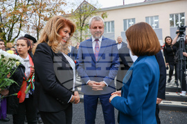 Тараклия (1 ноември 2023) Тържествено откриване на паметник на Васил Левски в Тараклия. На снимката: на тържествената церемония присъстват вицепрезидентът на България Илияна Йотова (ляво) и президентът на Молдова Мая Санду (дясно).