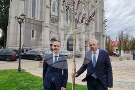 Винга (3 ноември 2023) 26 дървета бяха засадени във Винга в Румъния, където днес живеят банатски българи. Инициативата беше част от откриването на обновения парк, разположен пред римокатолическата църква „Света Троица”. Храмът е изграден от банатски българи през далечната 1891 г. и пази реликви от началото на XVIII век. Паркът се обновява за първи път от 40 години и се финансира изцяло със средства на общината. На снимката (от ляво надясно): кметът на Винга Йоан Негрей, префектът на Арад Тот Чаба, посланикът на България в Румъния Радко Влайков и депутатът на българското малцинство в румънския парламент Георги Наков.