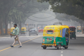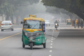 Делхи (5 януари 2024) Ежедневие в индийската столица Делхи. На снимката: рикша такси.