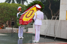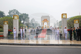 Ханой (6 януари 2024) Церемония по полагане на венец пред Паметника на героите и мъчениците се състои в Ханой.