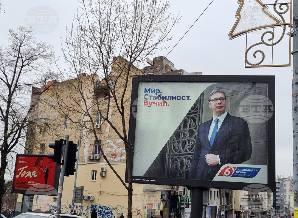 Белград (1 април 2022) В Сърбия е в сила предизборно мълчание преди предсрочните парламентарни и редовните президентски избори на 3 април. В няколко общини, включително в Белград, ще се произведат и местни избори. Предизборното мълчание ще продължи до затварянето на избирателните секции в 20 часа местно време в неделя. На снимката: Билборд на Александър Вучич, президент на Сърбия от 2017 г.